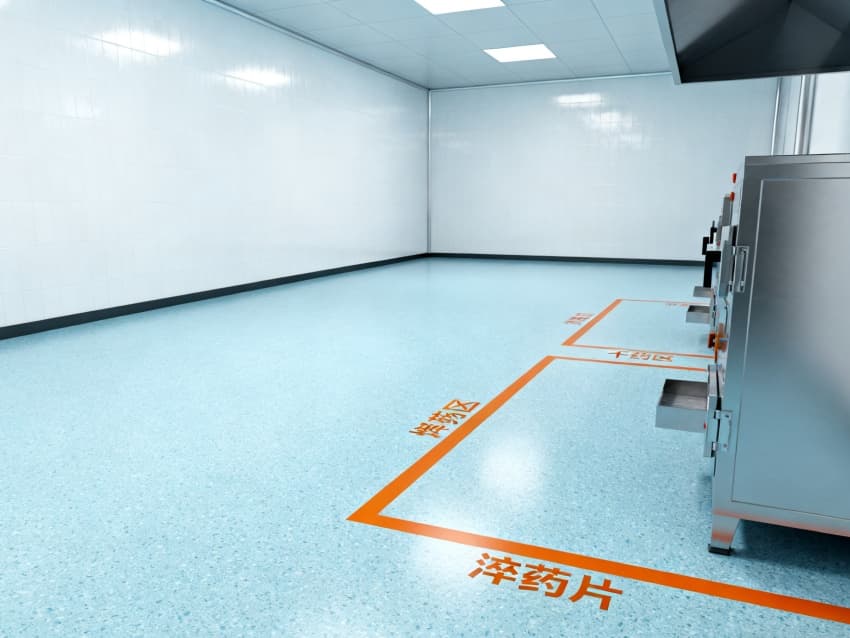 車間整體遵循醫(yī)藥級(jí)潔凈設(shè)計(jì)標(biāo)準(zhǔn),地面采用淺藍(lán)色抗菌防滑環(huán)氧地坪,通過無縫一體化施工工藝,徹底消除藥渣殘留隱患與衛(wèi)生死角,其卓越的耐腐蝕性與易清潔特性,能夠從容應(yīng)對(duì)中藥清洗、切制等高頻清潔作業(yè);四周白色防塵抗菌墻面經(jīng)過特殊工藝處理,具備優(yōu)異的光線漫反射性能,搭配頂部科學(xué)布局的柔和照明系統(tǒng),既保證操作人員能夠清晰觀察藥材炮制過程中的性狀變化,又為生產(chǎn)環(huán)境構(gòu)筑起一道潔凈無菌的安全屏障。