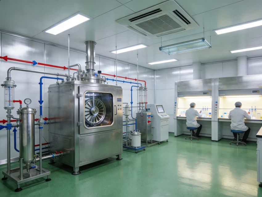 白色墻面采用食品級無菌抗菌涂層,采用無縫拼接與高精度找直工藝,陰陽角設(shè)計成R50圓弧倒角,徹底杜絕清潔死角,潔凈度穩(wěn)定維持在Class 7級以上標(biāo)準(zhǔn)。廠房按功能科學(xué)劃分出細(xì)胞培養(yǎng)區(qū)、病毒載體構(gòu)建區(qū)、純化區(qū)、質(zhì)控區(qū)等核心區(qū)域,每個區(qū)域都配有獨立層流凈化和負(fù)壓隔離系統(tǒng),細(xì)胞培養(yǎng)區(qū)還預(yù)留了恒溫恒濕精準(zhǔn)調(diào)控接口(溫濕度誤差±0.2℃、±2%RH),各區(qū)域均設(shè)置無菌物料傳遞通道,全方位守護(hù)生物安全與生產(chǎn)合規(guī),為CGT研發(fā)生產(chǎn)筑牢堅實基礎(chǔ)。