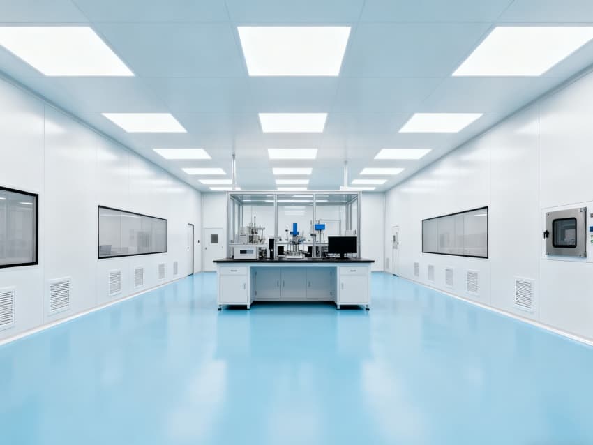 車間環(huán)境控制優(yōu)勢(shì)顯著:地面采用淺藍(lán)色防靜電環(huán)氧材質(zhì),有效規(guī)避靜電對(duì)量子元件的干擾;四周白色抗菌墻面經(jīng)特殊涂層處理,粉塵附著率低于0.1%,配合全密封吊頂設(shè)計(jì),可維持千級(jí)潔凈度,滿足量子器件對(duì)微環(huán)境的極高要求。?