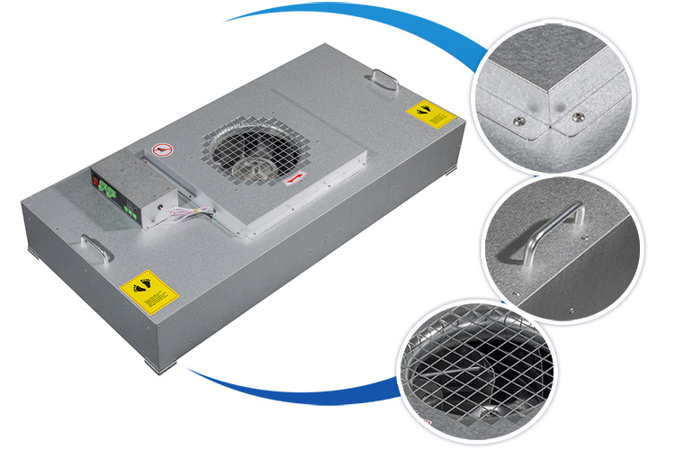 FFU為英文縮寫,全稱為 Fan Filter Units, 中文意思為"風機濾網單元"、“風機過濾機組”。確切地說是一種自帶動力、具有過濾功效的模塊化的末端送風裝置。風機從FFU頂部將空氣吸入并經HEPA過濾,過濾后的潔凈空氣在整個出風面以0.45m/s±20%的風速均勻送出。FFU可模塊化連接使用,使得FFU廣泛應用于潔凈室,潔凈工作臺,潔凈生產線,組裝式無塵室和局部百級等應用場合。利用FFU層流罩可以制作簡易潔凈工作臺,潔凈棚,潔凈傳遞柜和潔凈存衣柜。在新建潔凈室、潔凈廠房式改造翻新中,即可提高潔凈度級別,降低噪音和振動,也可大大降低造價,安裝維護方便,是潔凈環境的理想部件。