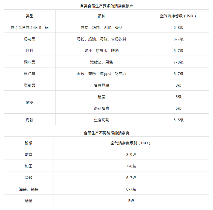 3、清潔作業區(潔凈室):指衛生環境要求最高,人員、環境要求較高,必須經過消毒和更衣才可以進入,如:原料、成品裸露的處理區域,食食品的冷加工間、即食食品的冷卻間、待包裝即食食品的儲存間、即食食品的內包裝間等。食品廠不同生產區域和空氣潔凈度等級