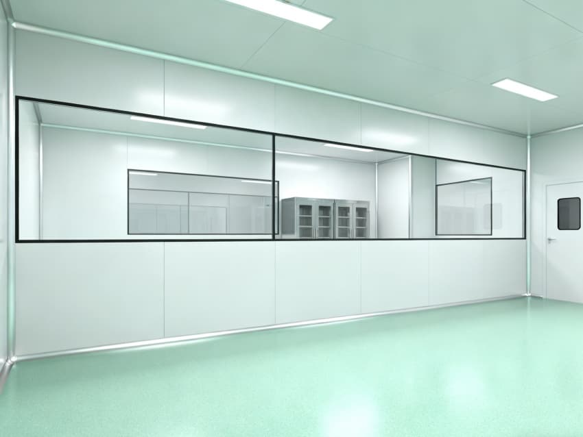 內部生產車間以淺綠色防滑防污地面、白色抗菌墻壁為基礎,按不同視角呈現功能分區:正面視角為核心生產區,預留8米柱距,適配注塑機、精密組裝設備;側面視角為無菌操作預留區,可快速升級至萬級潔凈標準,滿足植入類器械生產;背面視角為物料凈化區,設雙層傳遞窗,避免原料污染;左右側視角分別為質檢區與包裝區,前者預留檢測儀器平臺,后者規劃自動化包裝動線;45度角視角展現人員潔凈通道,含風淋室、更衣間,嚴格控制人員帶入污染物。整體空曠布局兼顧設備靈活擺放與合規要求,為醫療器械生產提供安全、高效的專業化空間。